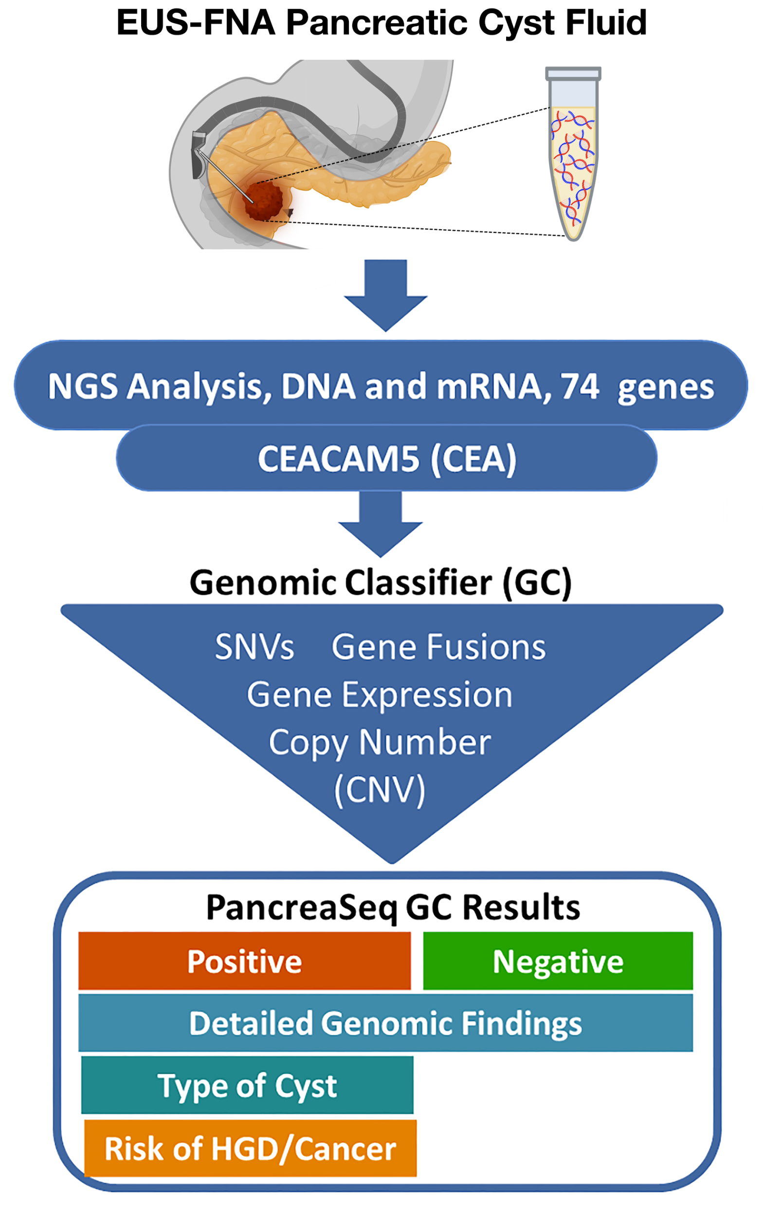 PancreaSeq® Genomic Classifier (GC) is a comprehensive next generation sequencing (NGS)-based test for diagnosis of pancreatic cysts.